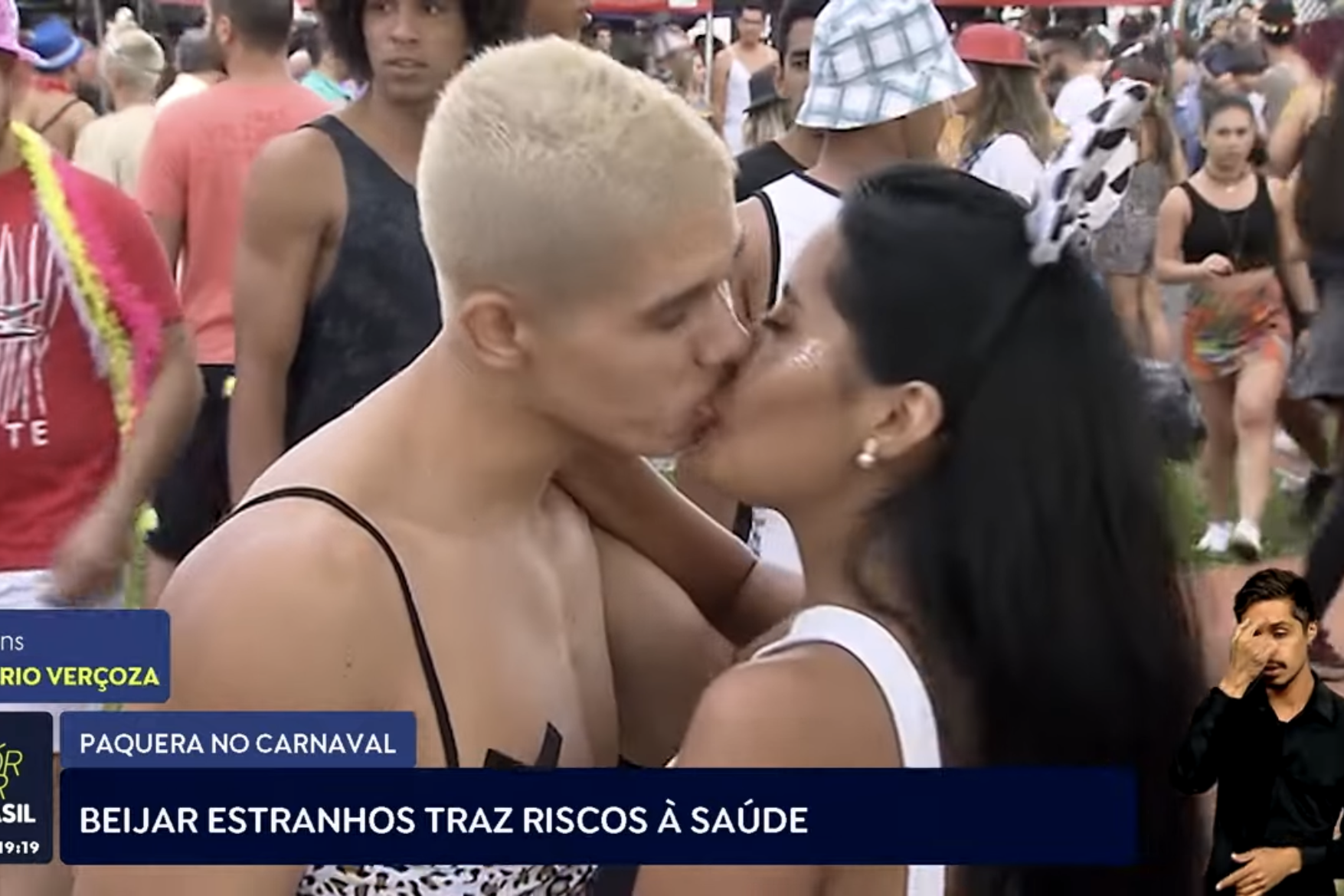 Beijar estranhos traz riscos à saúde! O alerta da reportagem da TV Brasil vem precedido da retranca da época do ano: “Paquera no Carnaval”. Na chamada do Repórter Brasil Noite, em plena sexta-feira de carnaval, dia 9 de fevereiro, o texto foi o seguinte: