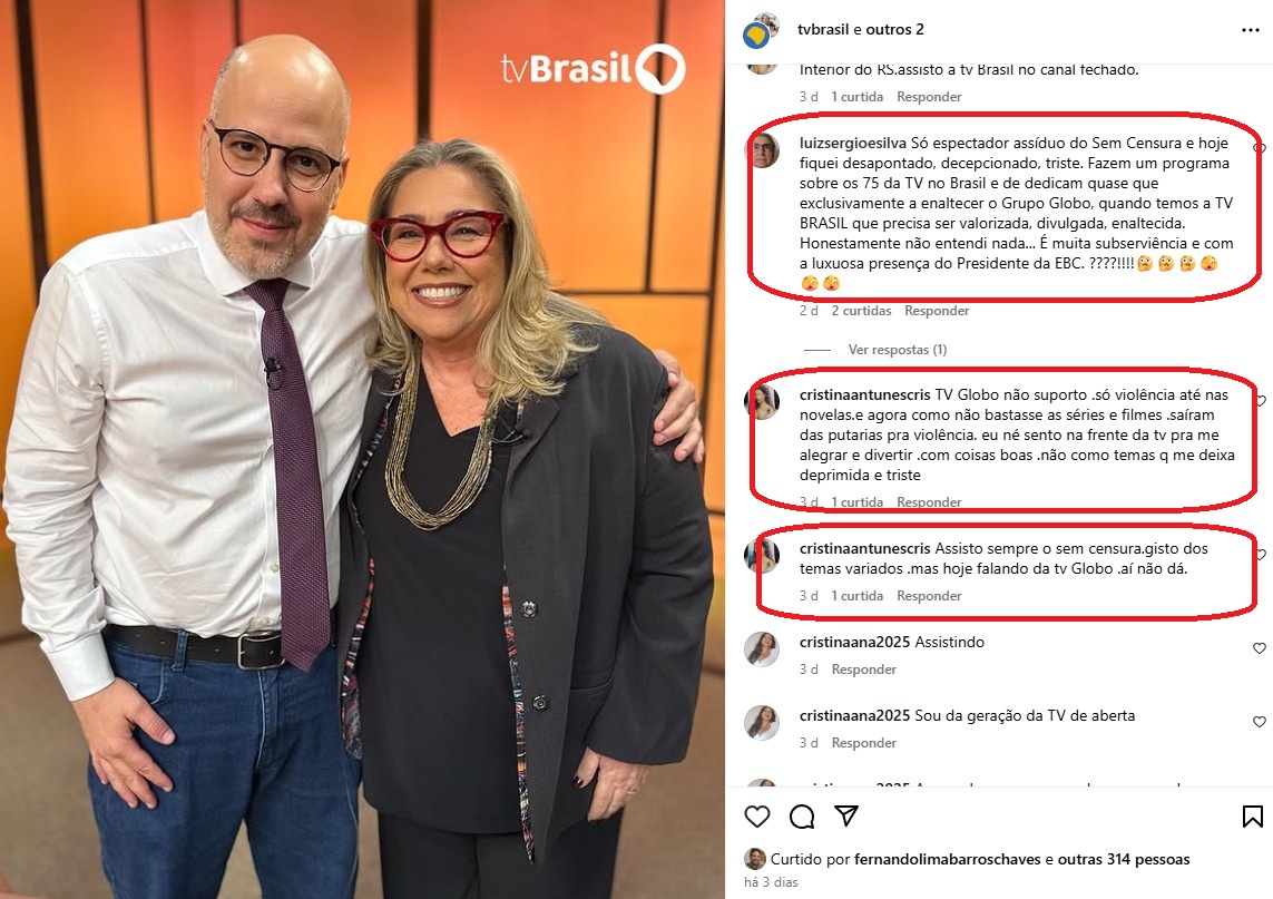 O público viu e reclamou, com mensagens ao vivo e também no Instagram. O programa que deveria homenagear os 75 anos da televisão no Brasil, acabou sendo uma ode à TV Globo. No Sem Censura, da TV Brasil, a própria TV pública foi pouco lembrada.
